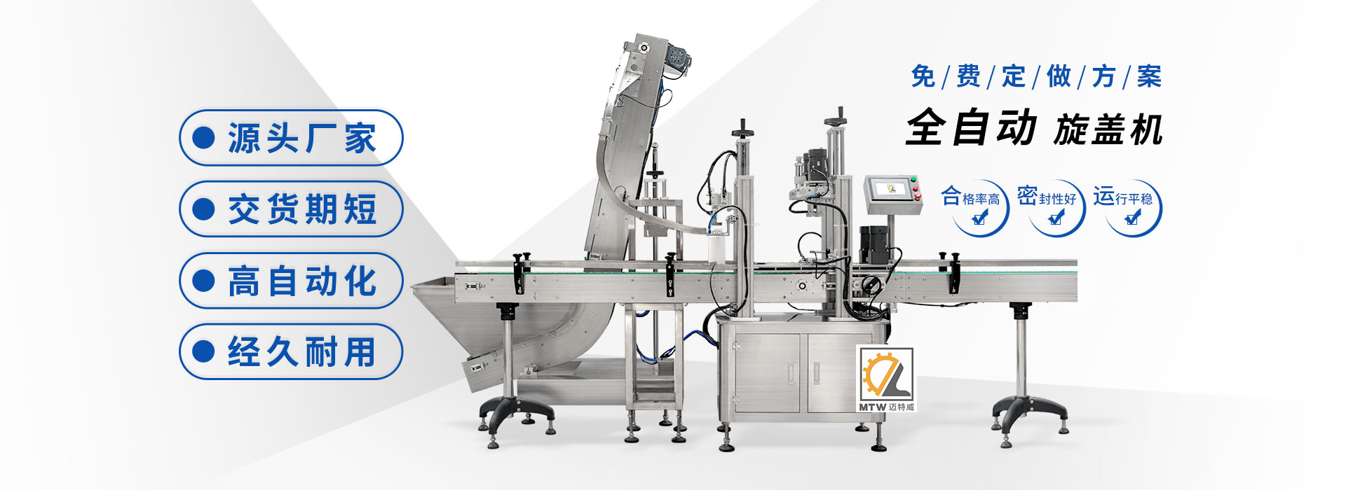 邁特威自動化設備(天津)有限公司坐落于素有京津明珠之稱的天津·武清區,是國家高新技術企業,專注生產、研發、銷售全自動灌裝機、旋蓋機、封口機、貼標機等系列產品,立足京津冀、服務全國,遠銷海內外,團隊由行業高技術人士組成,為國內外食品、日化、糧油、醫藥等企業提供滿意的包裝解決方案。
